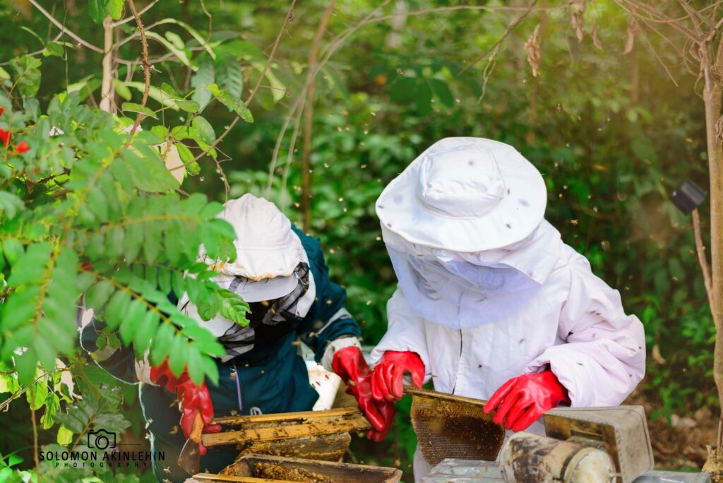 Waye’s Bee Co. was established in 2018 to produce and package local and quality honey and other beehive products for the Nigerian market.  Most of the honey we consume in Nigeria is imported – yet we have poor farmers living in rural communities who produce honey in large quantities. Waye’s Bee Co. seeks to improve the livelihood of these farmers by providing a guaranteed market for their honey and paying a fair price for their produce. We provide training for rural beekeepers on modern beekeeping methods in order to meet our strict quality standards. Our mission is to build a sustainable beekeeping business, support smallholder producers and promote the importance of bees for food security. Waye’s Bee Co. currently owns and manages 90 beehives across four farms in Abuja and Benin.
