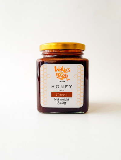 Indulge in a rich, chocolatey twist with wayesbeeco honey infused with cocoa. This delicious blend pairs the natural sweetness of honey with the deep flavor of pure cocoa, offering a perfect addition to your breakfast, snacks, or sweet recipes. It is available in a 300g jar.